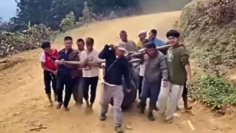 Lo que sí vemos es que cada uno de ellos, bien sobre alguno de sus hombros o cargado sobre sus brazos, van portando varios troncos a modo de estructura para mantener sujeto al animal que están tratando de mover. Poco a poco, esta docena de personas va avanzando y, por supuesto, la carga que llevan transportada.