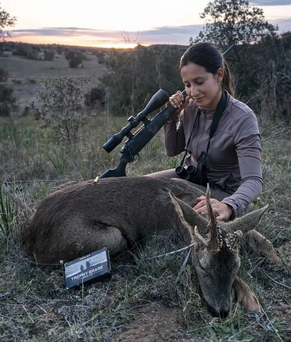 Con rapidez, Claudia ajustó los aumentos de su visor y aprovechó la claridad que aún ofrecía la última luz del día. El disparo fue limpio. «La Nosler hizo que cayera sobre su propia sombra», relata sobre la bala con la que consiguió abatir al animal.