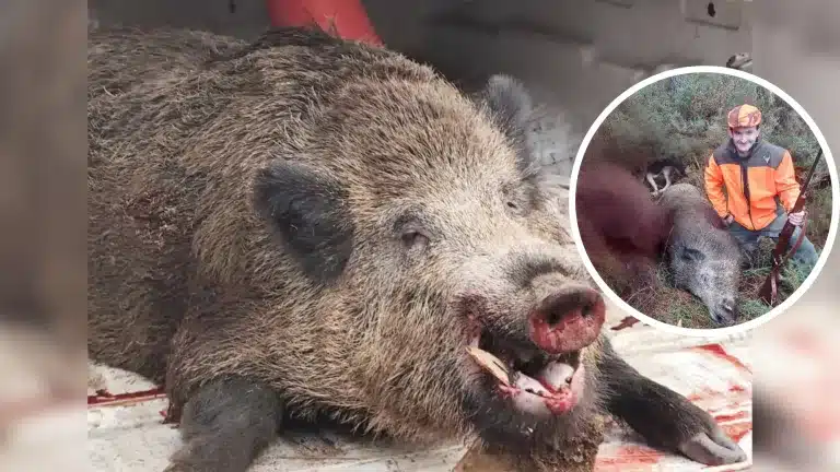 Santiago fue el afortunado que consiguió verlo a algo más de 100 metros y quien, con un disparo perfecto del 7mm Remington Magnum en el codillo, lo hizo hincar rodilla. El cazador, al verlo, quedó atónito. Acababa de abatir uno de esos ejemplares los que cualquier jabalinero sueña.