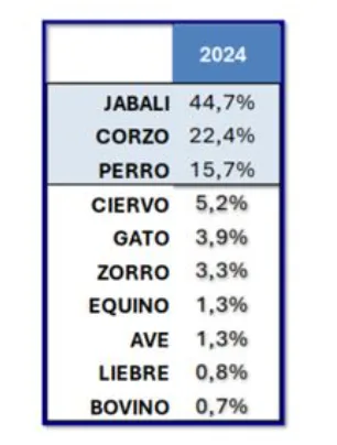 El informe también recoge variaciones notables en la evolución de estos datos. Mientras que el jabalí ha registrado una ligera reducción del 3,8% respecto al año anterior, el corzo ha aumentado su implicación en un 3,8%. Destaca, asimismo, el crecimiento del zorro, con un 16% más de siniestros, y de la liebre, con un preocupante incremento del 40,7%. Por el contrario, el bovino y el equino han visto reducirse su siniestralidad en un 34,6% y un 19,5%, respectivamente.