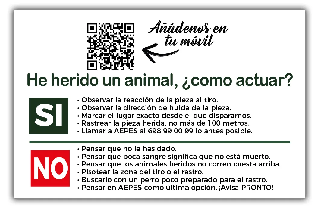 La propia AEPES recuerda que su actividad es totalmente altruista y que se apoya en un principio ético fundamental: «La acción de caza no termina con el disparo, sino con el cobro de la pieza». Bajo esta premisa, insisten en que todo cazador responsable debe hacer el máximo esfuerzo para recuperar los animales heridos, evitando que sufran y reduciendo también el riesgo de contaminación de rastros.