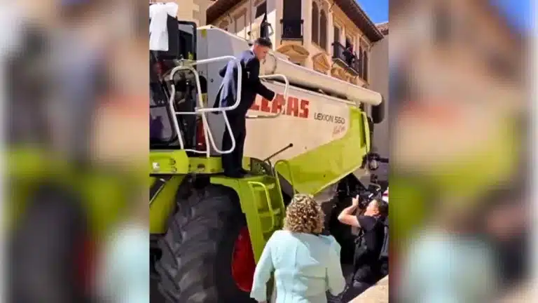 Tal y como vemos en el siguiente vídeo, el hombre presenta a su boda montado en una cosechadora, concretamente en una Claas Lexion 550 Montana, según han especificado en la descripción que le acompaña al vídeo.