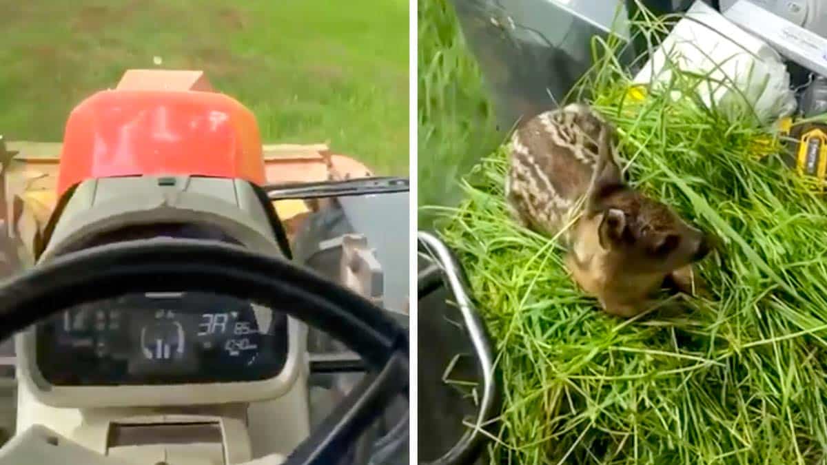La grabación muestra el momento en el que el agricultor coge a un corcino de una siembra que está cosechando para evitar que sea arrollado. Además, lo hizo como se debe hacer: sin tocarlo directamente, envolviéndolo con hierva para evitar dejar su olor.