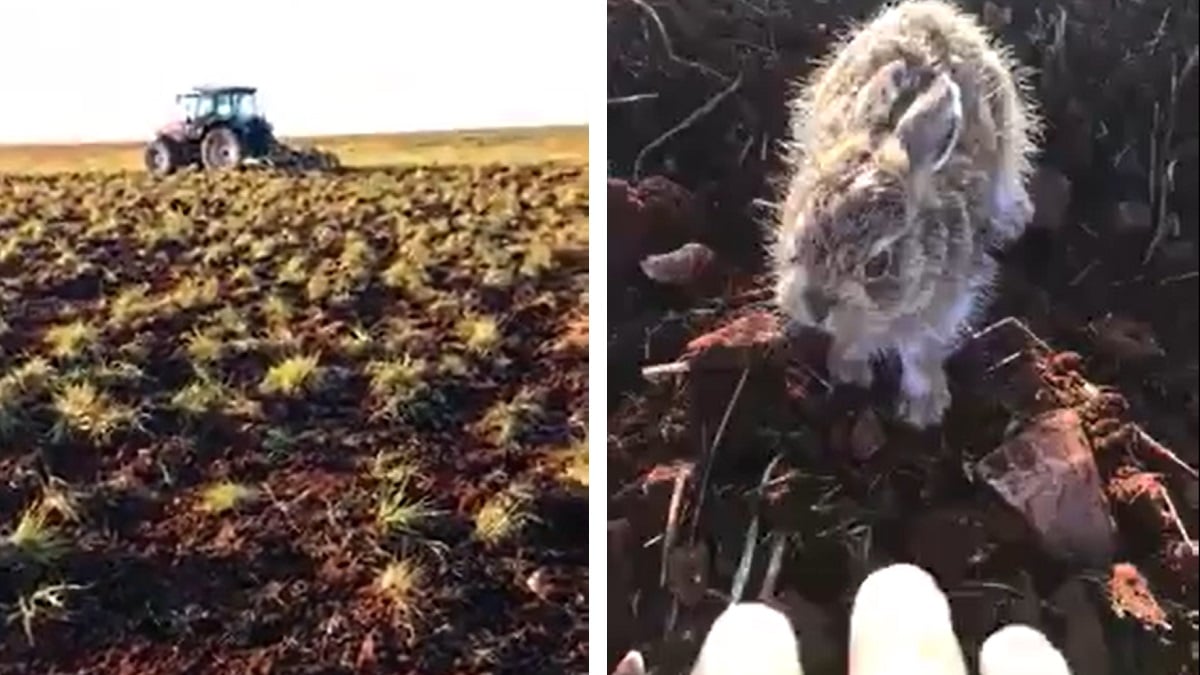 Las imágenes demuestran el genio y valor del pequeño mamífero, y una acción ejemplar del agricultor, que intenta cambiarlo de sitio para poder seguir labrando la tierra sin que sufra ningún daño.