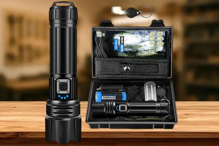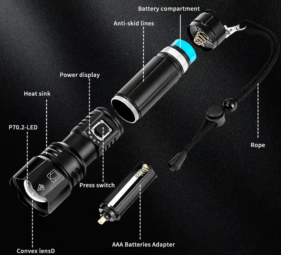 La linterna Azyvum destaca por su chip P70.2 de alta potencia, que la hace hasta 10 veces más brillante que una linterna convencional. La marca asegura que es capaz de iluminar por completo estancias de hasta 120 metros cuadrados, además de enfocar con precisión objetos situados a medio kilómetro. Para muchos usuarios, se trata directamente de un «cañón de luz de bolsillo».