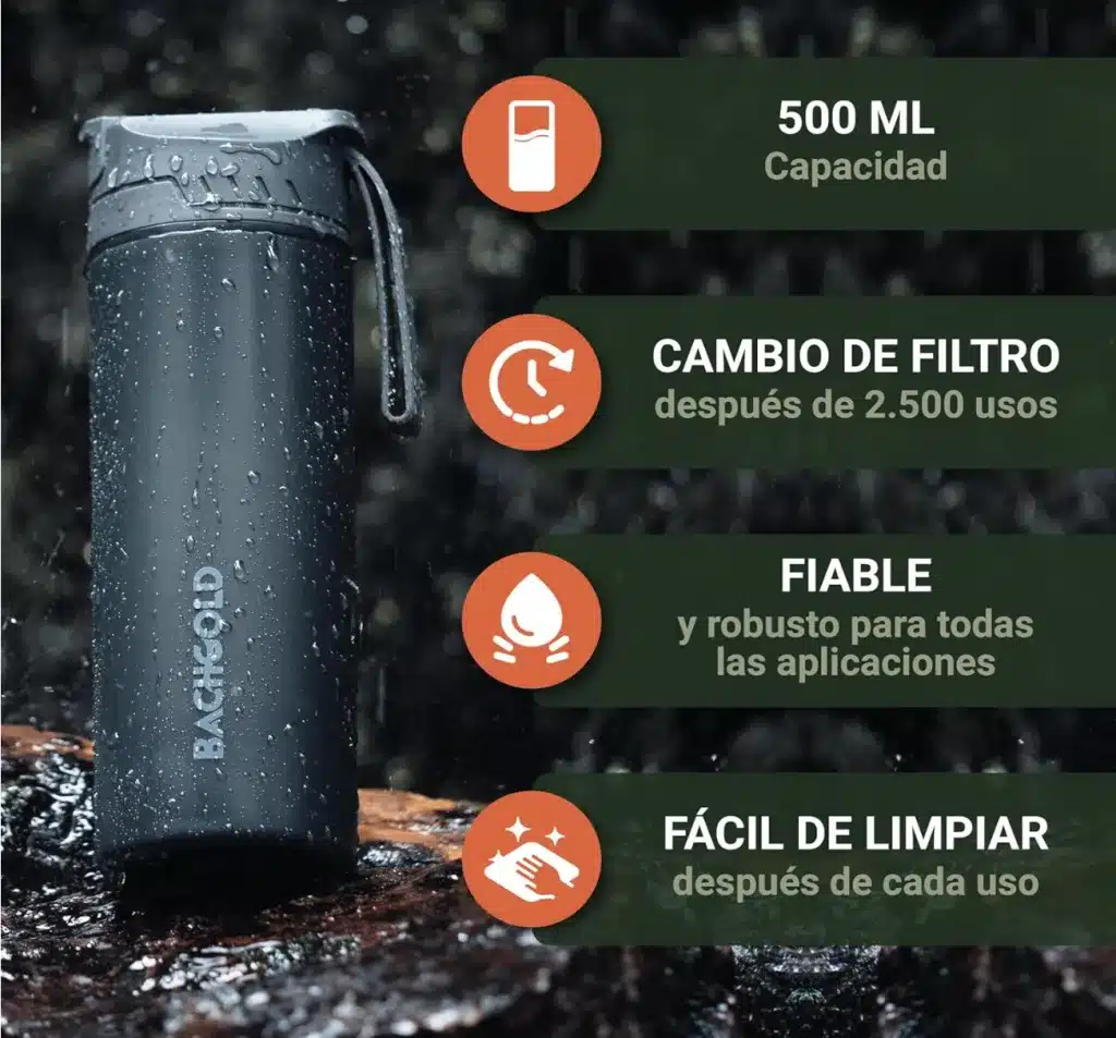 Si eres amante de la naturaleza o buscas una solución práctica para tener agua potable en cualquier parte, esta oferta de Amazon no te va a dejar indiferente. La botella filtradora BACHGOLD Outdoor, diseñada en Suiza y fabricada bajo estándares de alta calidad, está ahora disponible con un importante descuento.