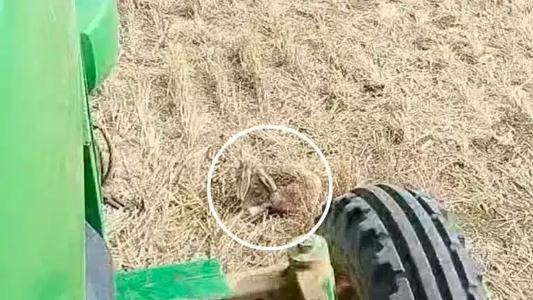 Durante estas labores, se da cuenta de que en su camino hay una liebre encamada a la que está a punto de pillar con la máquina. Lejos de desear tal final para ese animal, el cazador decidió parar el tractor y, así, evitar acabar con su vida. De repente, dicho ejemplar, al que apenas se le puede ver ni un pelo, sale corriendo y huye del lugar.