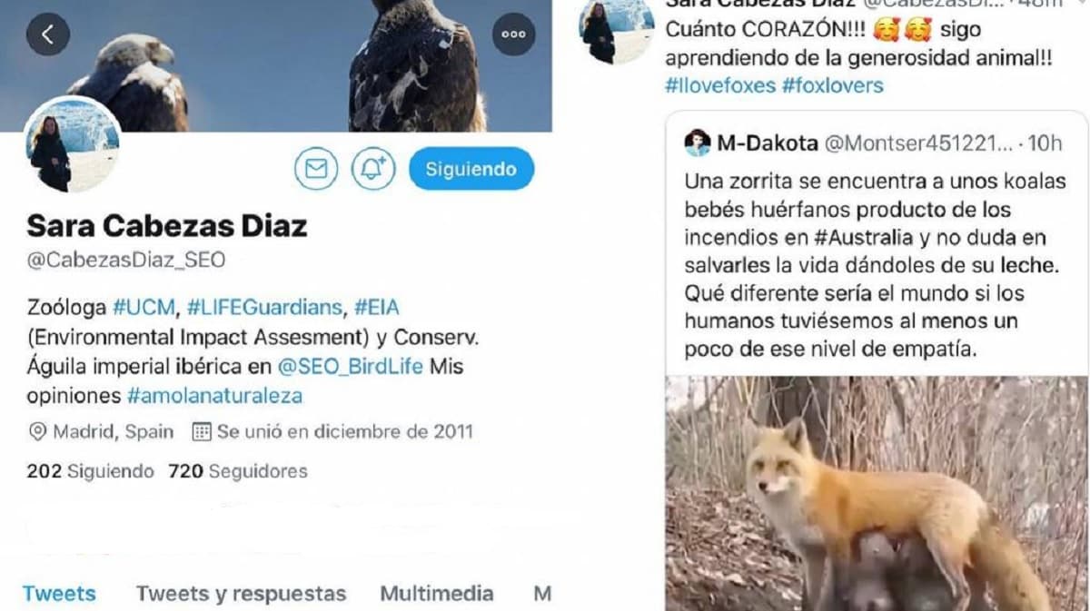 Miles de animalistas han compartido en los últimos días el vídeo de una zorra amamantando a sus crías que han confundido con koalas. Entre ellos se encuentra una zoóloga y técnica de conservación de SEO/BirdLife que también ejerció incluso como profesora de biología en la Universidad Rey Juan Carlos de Madrid.