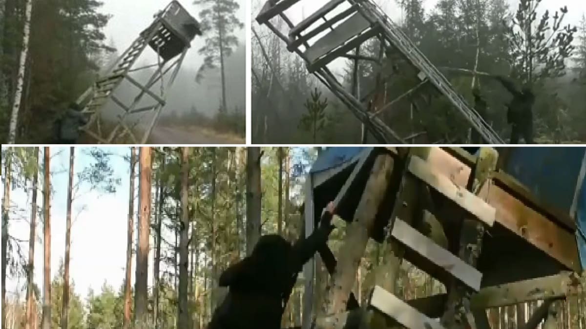 El vídeo, publicado por ellos mismos en su página de Facebook ‘Groupe d’Action Contre la Chasse du Blaireau et du Renard‘, muestra cómo van destrozando las casetas que tienen preparadas los cazadores para sus jornadas de espera y también para vigilar el buen estado del monte fuera de temporada.