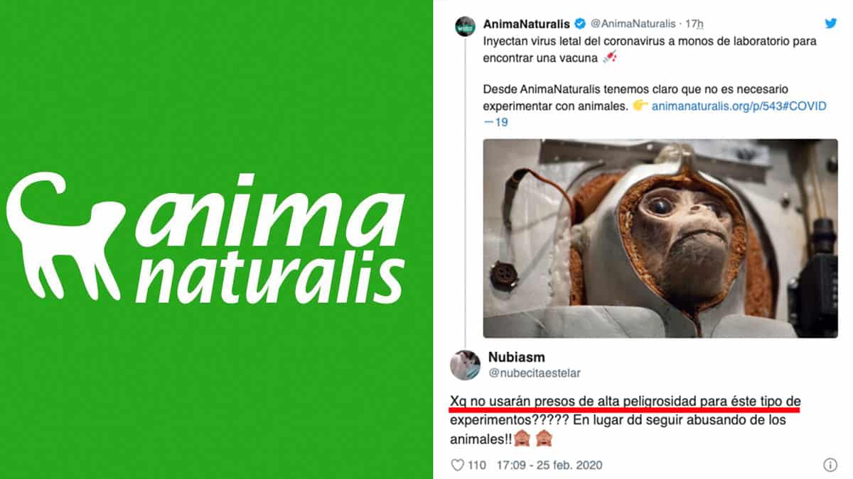 El tuit de AnimaNaturalis ha sido compartido más de 470 veces y cuenta con casi 500 likes, además de numerosos comentarios. Entre ellos, destaca el de una usuaria que se hace llamar @nubecitaestelar y que dice, literalmente: «¿Por qué no usarán presos de alta peligrosidad para este tipo de experimentos? ¡En lugar de seguir abusando de los animales!»