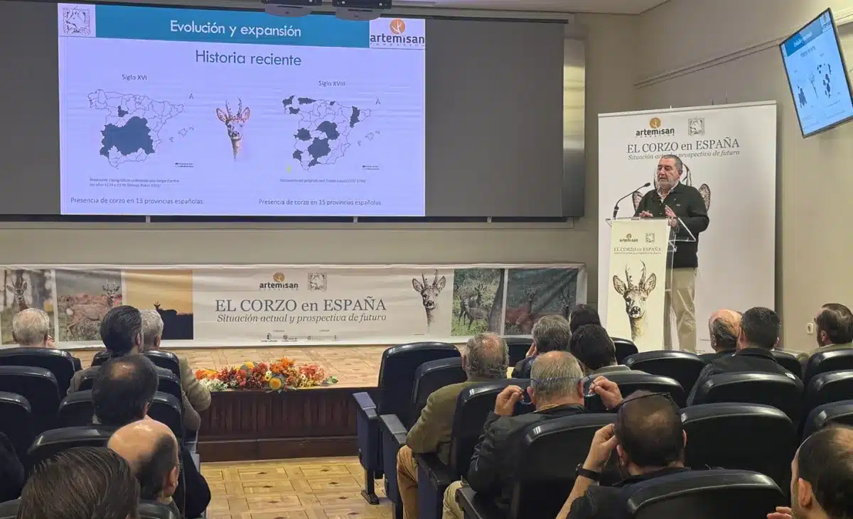 Durante la jornada, el investigador de Fundación Artemisan Gonzalo Varas apuntó también hacia dónde se está moviendo el corzo en los últimos años: «El corzo se está expandiendo desde Burgos y Soria hacia Teruel, Zaragoza y Cuenca. Eso es lo que muestran los datos. Por lo que estoy seguro que los próximos corzos grandes se cazarán en Valencia. El rumbo sureste es claro». Una tendencia que, según explicó, refuerza la idea de que la especie seguirá ganando terreno en nuevas áreas en el corto y medio plazo.