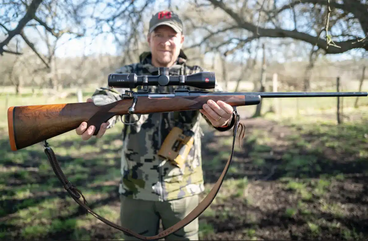 • Rifle: Custom 6.5×55 Swedish con acción Mauser argentina.