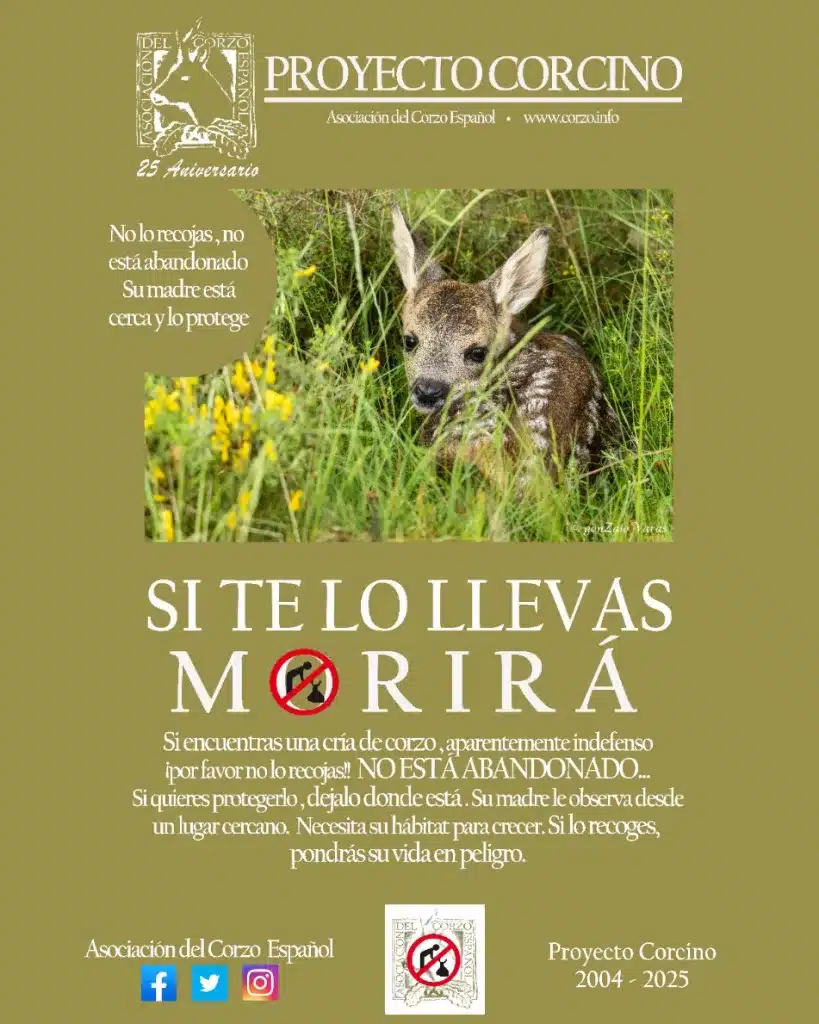 A pesar de los años, se siguen recogiendo corcinos en los centros de recuperación, cada año, llevados por personas que desconocen las costumbres reproductivas de la especie. Por otra parte, el corzo es una más de las especies cuyas crías perecen por acción de la maquinaria agrícola en cada temporada. Por tanto, es indispensable seguir con el mensaje para llegar a todos los colectivos implicados.