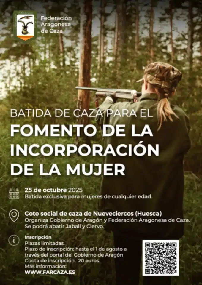 En un movimiento que marca un antes y un después en la promoción de la participación femenina y juvenil en el mundo cinegético, la Federación Aragonesa de Caza (FARCAZA) y el Gobierno de Aragón han anunciado la celebración de dos batidas exclusivas para estos colectivos en el coto social de caza de Nueveciercos (Huesca). Por apenas 20 euros, las personas seleccionadas podrán disfrutar de una jornada completa de caza, con derecho a trofeo y comida.