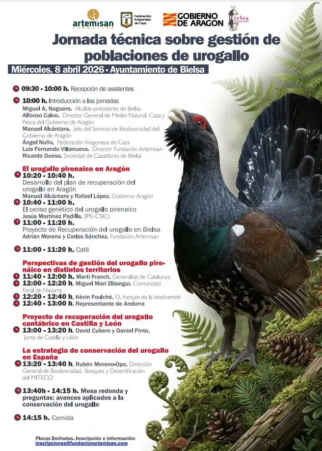 A lo largo de la mañana se analizará la situación del urogallo pirenaico en Aragón, con la participación de técnicos del Gobierno autonómico, investigadores del IPE-CSIC y expertos de la propia Fundación Artemisan. Este bloque permitirá conocer de primera mano los avances y dificultades del proyecto en este territorio.