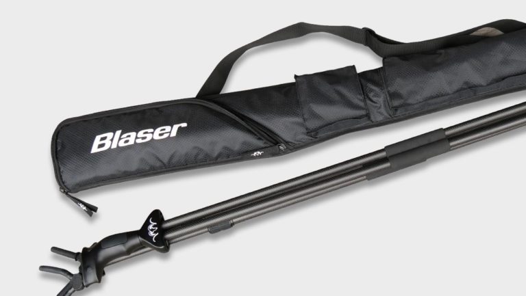 La innovación de este apoyo de Blaser frente a otros sistemas es la incorporación estratégica de una ergonómica empuñadura de pistola giratoria de hasta 40º en el soporte frontal. Con esta aportación al sistema de disparo se puede mantener el rifle de forma segura en el objetivo sobre un recorrido lateral de 25 metros a una distancia de 100 metros. Esto se puede hacer sin tener que mover las patas de su posición original, siendo una ventaja importantísima cuando la caza está en movimiento.