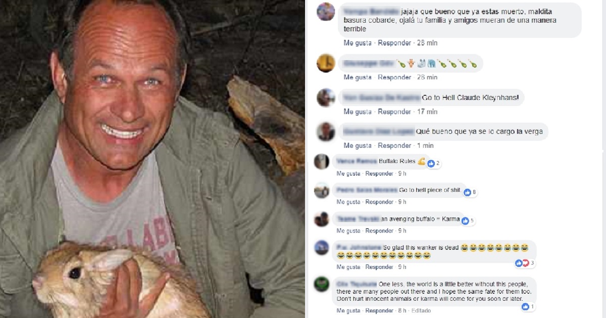 Varios anticaza no han tardado en alegrarse y mofarse en las redes sociales de la muerte del cazador profesional Claude Kleynhans, fallecido recientemente en Sudáfrica al ser atacado por un gran búfalo.