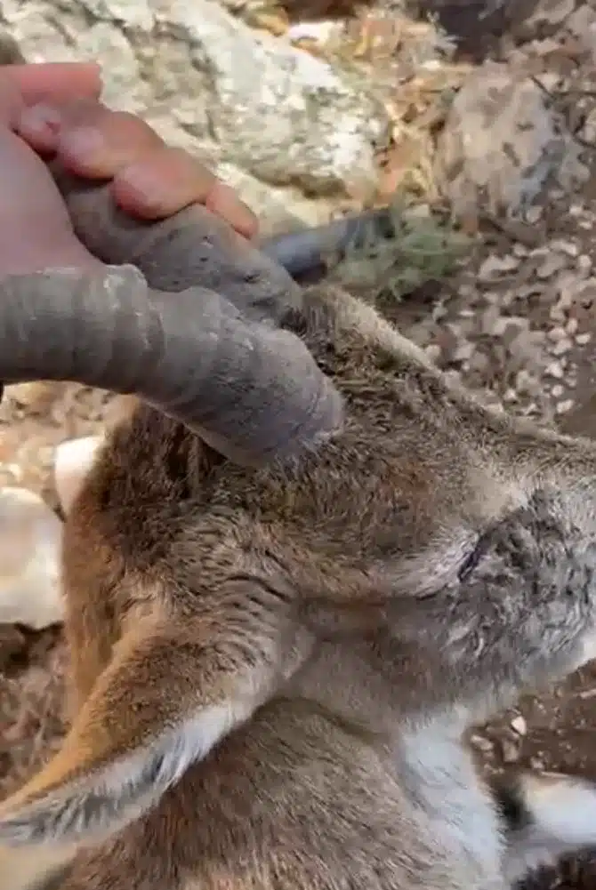 Un ejemplar de macho montés aún vivo pero sin visión. © JyS
