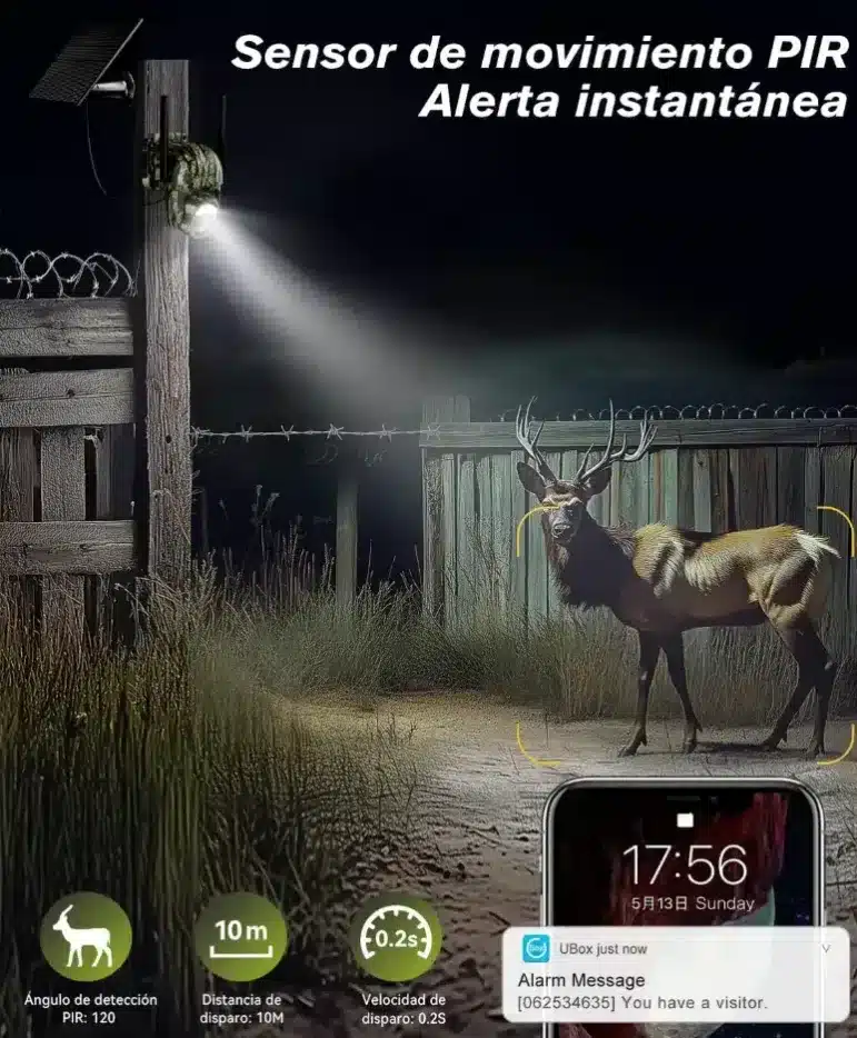 Este modelo combina autonomía, conectividad y alta resolución. Gracias a su panel solar de 6 vatios y a una batería de 10.400 mAh, puede instalarse en cualquier rincón del monte sin preocuparse por el suministro eléctrico. Además, al incorporar una tarjeta SIM, transmite las imágenes directamente al móvil del usuario, lo que la convierte en una solución especialmente útil para zonas de difícil acceso.