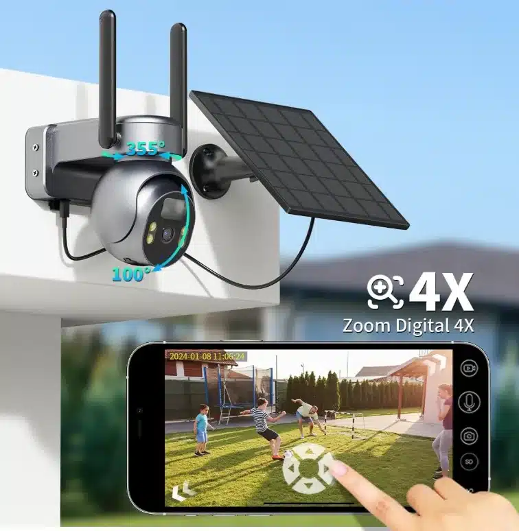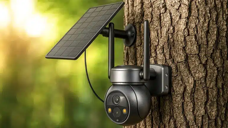 Esta cámara de vigilancia destaca por su independencia energética y de conexión. No necesita estar conectada a la corriente eléctrica gracias a su panel solar, ni requiere WiFi porque funciona con tarjetas SIM. Esto la convierte en una opción perfecta para casas de campo, parcelas, cotos de caza, fincas o almacenes situados en zonas sin cobertura de internet.
