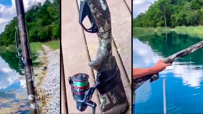 El vídeo que te mostramos a continuación no para de ser comentado por cientos de cazadores y pescadores en las redes sociales. Se trata de una escopeta utilizada como caña de pescar. El cazador ha incorporado un carrete y unas anillas al propio arma de tal forma que lanza el señuelo al agua y, cuando pica un pez, ¡dispara!