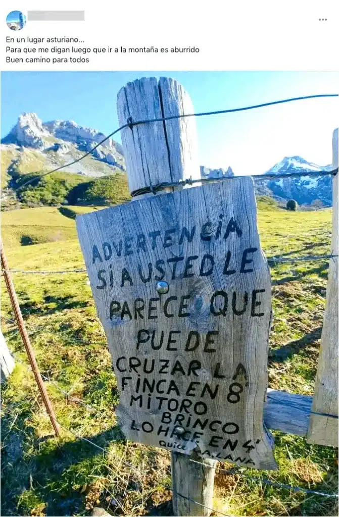 El propio autor de la publicación en redes acompañó la imagen con un guiño aún más simpático: «En un lugar asturiano. Para que me digan luego que ir a la montaña es aburrido. Buen camino para todos». El comentario, lejos de sonar agresivo, ha servido para subrayar que el mensaje no nace del enfado, sino del cansancio ante quienes confunden el campo con un espacio público sin reglas.