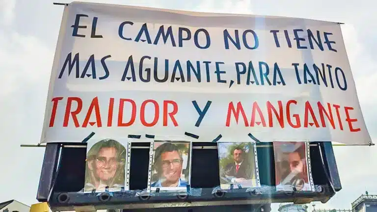 «El campo no tiene más aguante para tanto traidor y mangante». Esta frase, acompañada de las caras de Teresa Ribera, Hugo Morán y Adrián Barbón, es uno de los mensajes reivindicativos que pudieron leerse y escucharse por las calles de Oviedo contra los socialistas que han propiciado esta situación.