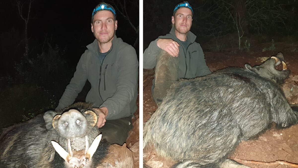 Entonces, encaró su rifle en calibre .300 Winchester Magnum con munición Norma Plastic Point y disparó al codillo del animal: «Cayó al segundo», explica. Al ir a por él, llegó la tremenda alegría: «Yo ya sabía que era muy grande porque lo había podido ver por el visor, pero fue entonces cuando comprobé que era algo inigualable. Pesaba unos 100 kilos, pero los tremendos colmillos y amoladeras son de espanto», confiesa sobre un trofeo que ya ha llevado a la taxidermia.