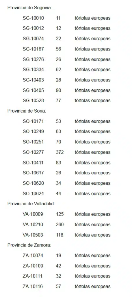 La distribución del cupo entre comunidades autónomas ha sido acordada entre el Ministerio de Agricultura y las regiones, siendo Castilla y León una de las más beneficiadas, con un total de 13.472 tórtolas autorizadas para su aprovechamiento cinegético. Este reparto se ha hecho en función de la superficie y el número de cotos adheridos al sistema de control de capturas.