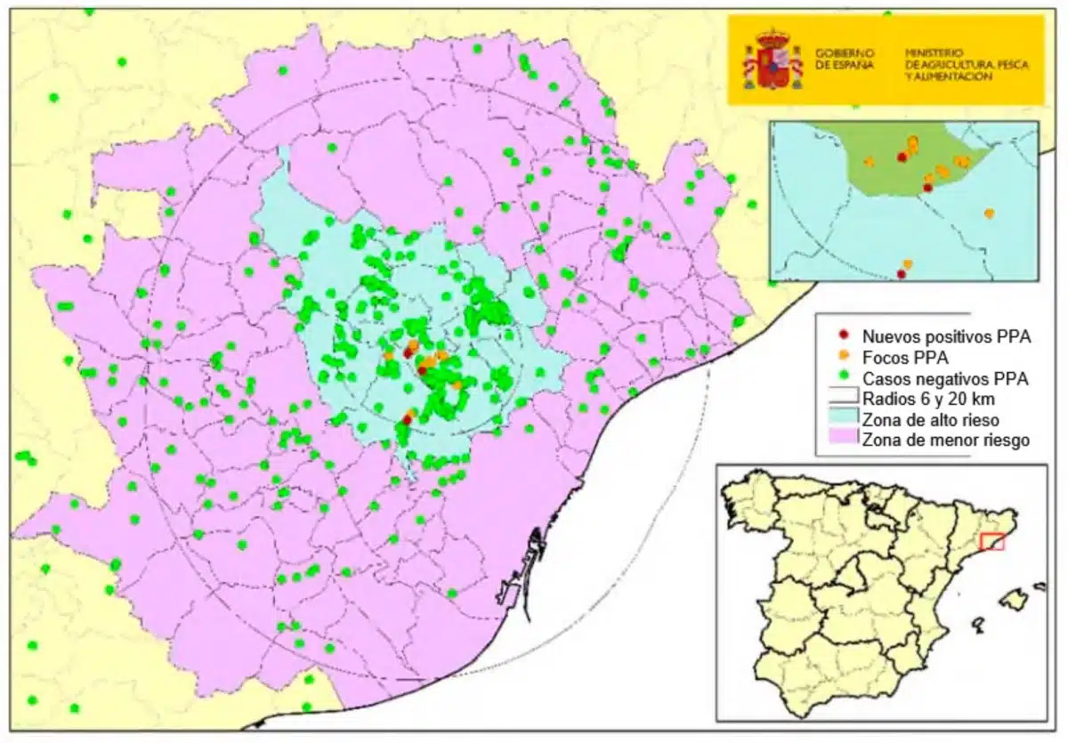 Las medidas de control siguen activas e incluyen la búsqueda intensiva de cadáveres, actuaciones para la reducción de las poblaciones de jabalíes en la zona infectada de bajo riesgo y el refuerzo de vallados y barreras de contención para limitar el movimiento de los animales.