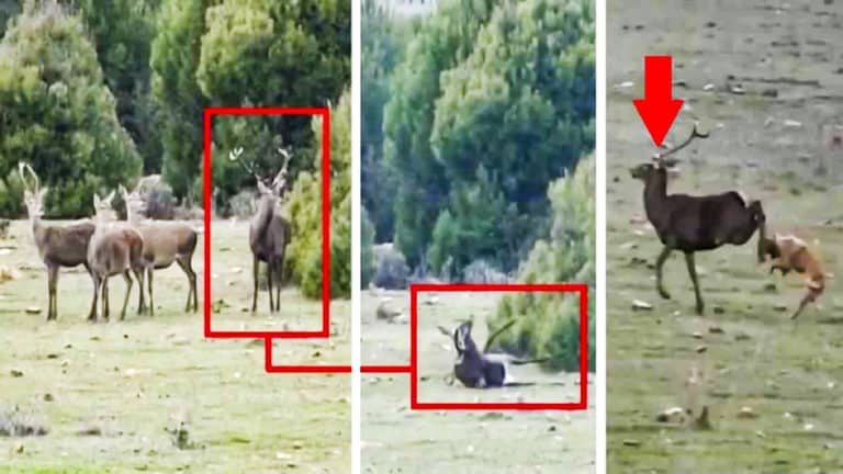 ¿Qué ha sucedido?, debió preguntarse el cazador tras ver cómo el ciervo al que había disparado se incorporó y lo único que pudo recuperar de él fue una de las cuernas de su trofeo. Como puede verse en el vídeo que compartimos a continuación, la bala impactó en la base de esta, seccionando el trofeo junto a la roseta y dejando al animal aturdido durante unos segundos.