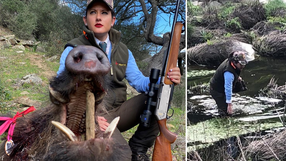 Esta chica caza su primer jabalí junto a su suegro y los alanos de su novio