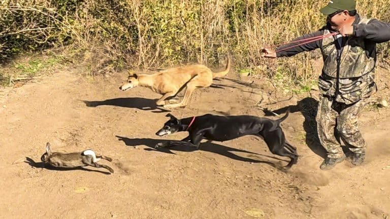 Para este tipo de caza de conejos y tal y como podemos ver en las imágenes de las que hablamos, los cazadores van acompañados de perros de caza, concretamente de galgos y beagles. Sin embargo, lo más llamativo es que también hacen uno de un tirachinas.