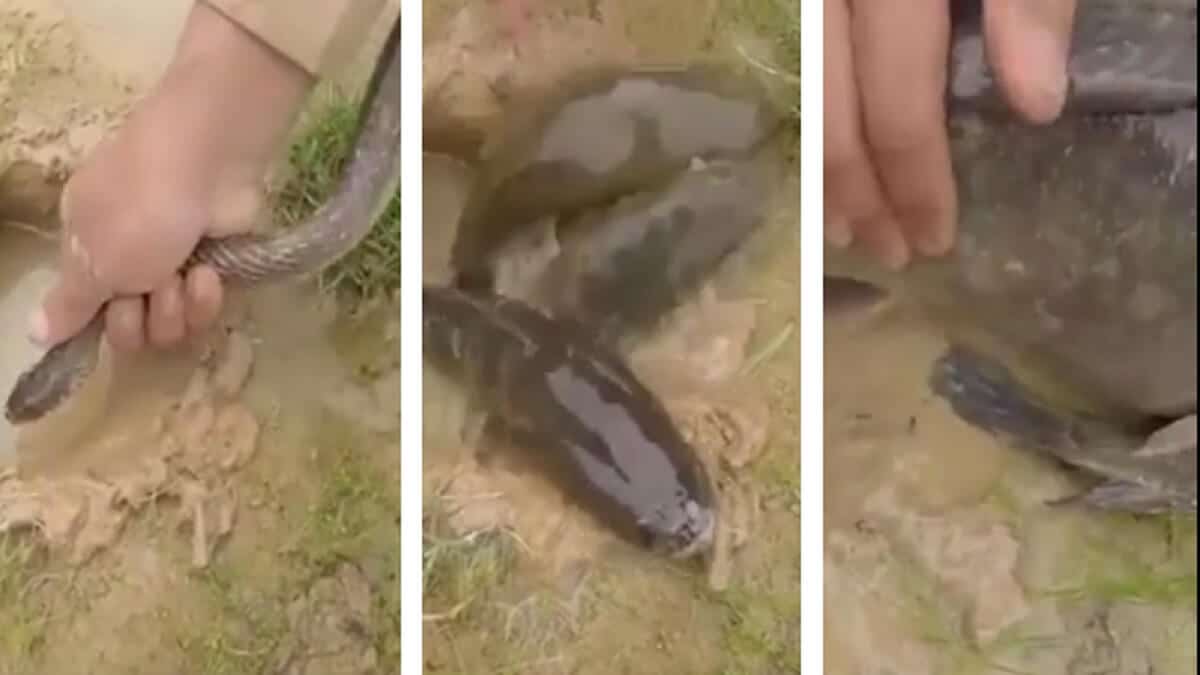 El vídeo que te mostramos a continuación se ha popularizado en las últimas semanas por la espectacularidad con la que una serpiente entra en un agujero inundado y lleno de peces y cómo los va desalojando. Pequeños y grandes, todos los animales salen a tierra a toda prisa para evitar el encuentro con el reptil.