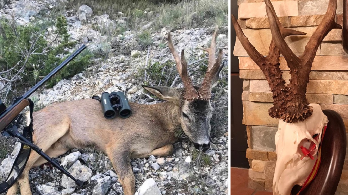 «Sabía que por la zona había un corzo grande porque, el año anterior, mientras iba recechando por el mismo sitio, vi uno que no pude cazar que tenía buena pinta», señala Ángel. «Me gusta andar mucho por el monte, haciendo fotos a los animales. En una de mis salidas pude ver un corzo que me salió a diez metros de debajo de un pino y lo que más me llamó la atención es que no llevaba correa, sino que iba ya limpio en pleno mes de febrero», asegura.