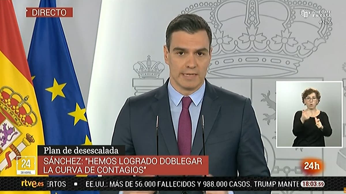 El presidente del Gobierno, Pedro Sánchez, ha comparecido esta tarde para explicar el plan de desescalada de las medidas preventivas frente al coronavirus en España. La caza y la pesca se volverán a permitir a finales de mayo si todo va bien.