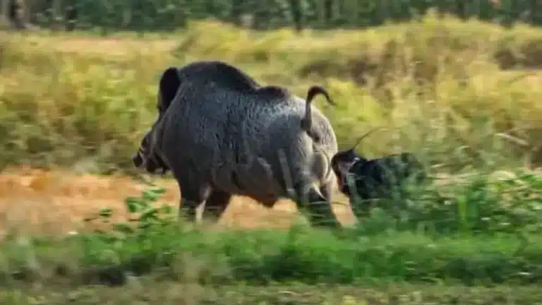 Lo que vemos en la filmación es una auténtica persecución de sus perros de caza al enorme jabalí. Sin embargo, el objetivo marcado por estos cazadores no resultó nada fácil de conseguir.