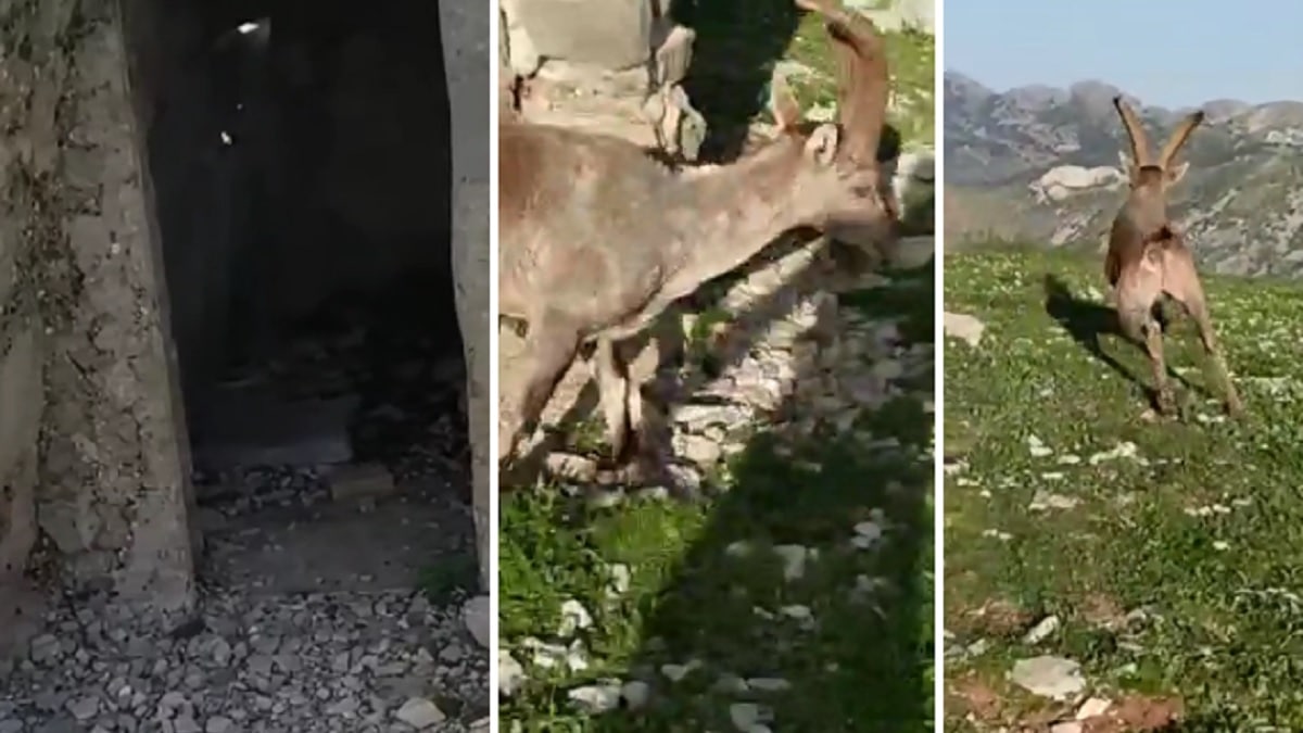 El joven cazador jiennense Miguel Pérez, de 20 años de edad, grabó el pasado jueves 7 de mayo una escena muy peculiar cuando salió a correr por las cercanías de su localidad natal, Torres (Jaén). Pérez se topó con un macho montés en el interior de una antigua casa de pastores.