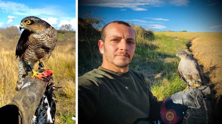 ‘Juanita’, como así se llama su gavilán hembra, sale cada fin de semana junto a su dueño a cazar urracas en el coto social de Ripollés, en la provincia de Gerona: «Ha sido dos veces campeona de Cataluña y de España en captura de pequeñas aves, en concreto de codorniz», explica su dueño a Jara y Sedal.