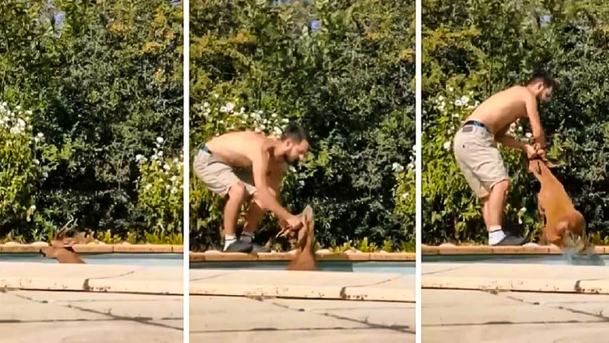 En las imágenes se ve cómo un corzo se encuentra nadando y sin poder salir de una piscina en una casa ubicada en la casa del cazador, en la localidad francesa de Albi. El hombre, que coloca el móvil para grabar la escena, rescata al corzo de la piscina, salvándole de una muerte casi segura.