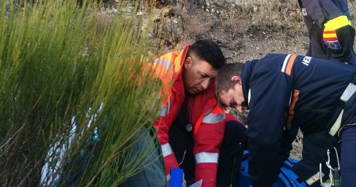Un cazador resultó herido grave al caer desde casi 20 metros cuando intentaba rescatar a uno de sus perros, que se había quedado atrapado mientras cazaba.