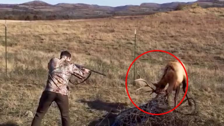 Las imágenes de un cazador que se encuentra a un ciervo con su cornamenta enganchada en unas alambres cuando va cazando retratan a la perfección el sentido de la caza.