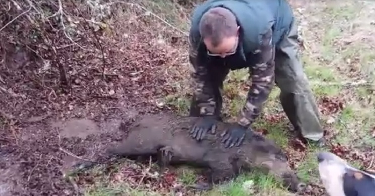 El hombre se dirigía a una batida cuando localizó este jabalí atrapado en un lazo. Comenzó entonces este intento desesperado por reanimarlo.