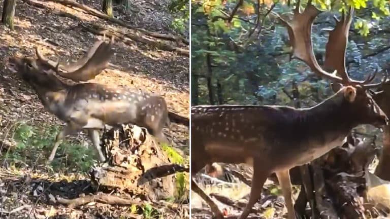 En el caso de este vídeo, se ve perfectamente cómo el gamo camina con una tranquilidad inusual en los machos, propia de esta época de apareamiento en la que dejan a un lado su habitual carácter huidizo para centrarse en el objetivo de procrear. Es un vídeo que, sin duda, resulta extraño de ver porque el animal no se muestra esquivo, sino que permite al cazador observarlo a tan sólo unos metros de su presencia.