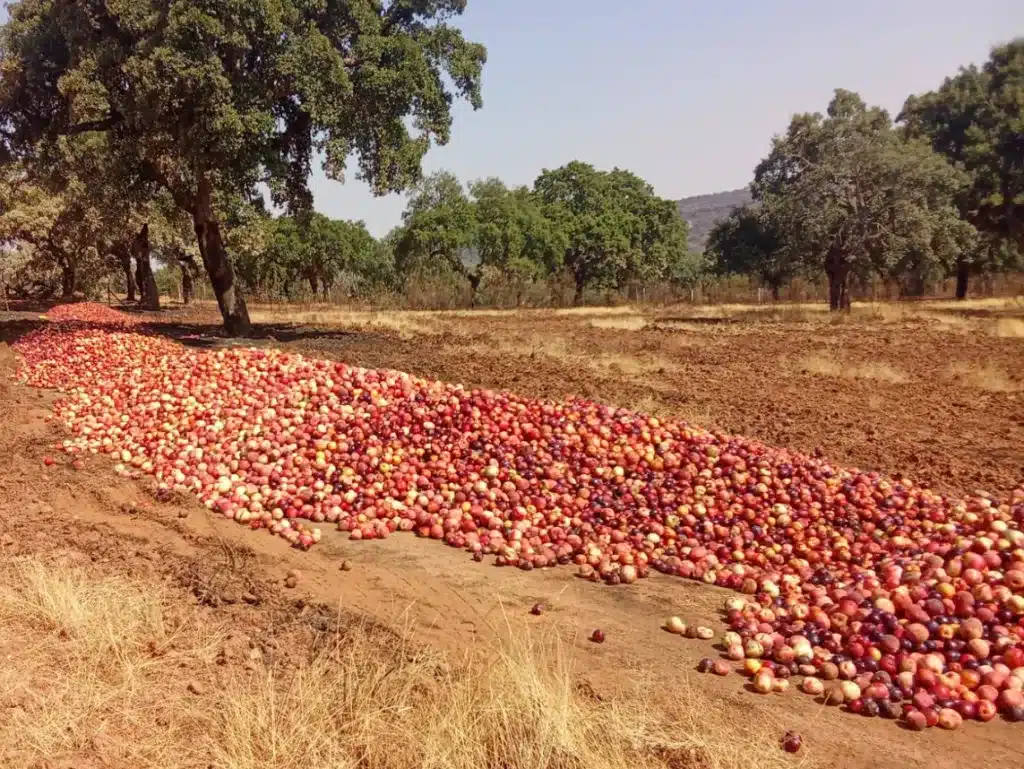Un camión de manzanas entero repartido por la finca. © Facebook