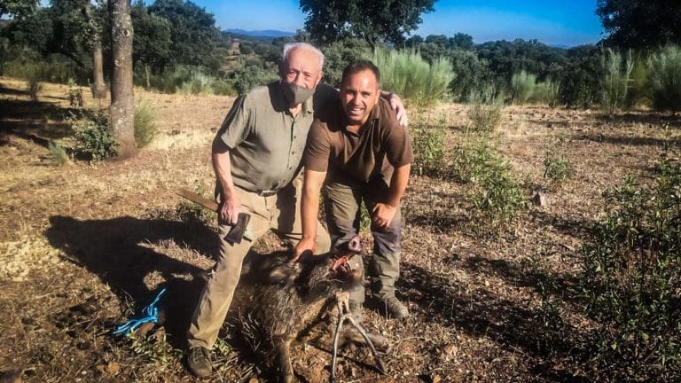 Las esperas de jabalí también son su gran pasión: «Con 93 años se sube a las encinas, hace sus puestos, hace sus comederos…», explica su nieto, que cuando es de noche acompaña a su abuelo a esperar. «Está tan apasionado por ellas como el primer día, además de por las monterías, a las que acude cada temporada en Portugal con su coche, eso sí, acompañado de alguno de nosotros», señala.
