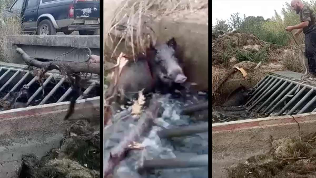 Un cazador rescata de un canal a un jabalí y sube el vídeo del paso a paso en las redes sociales. Su gesto ha sido muy aplaudido en las redes sociales.