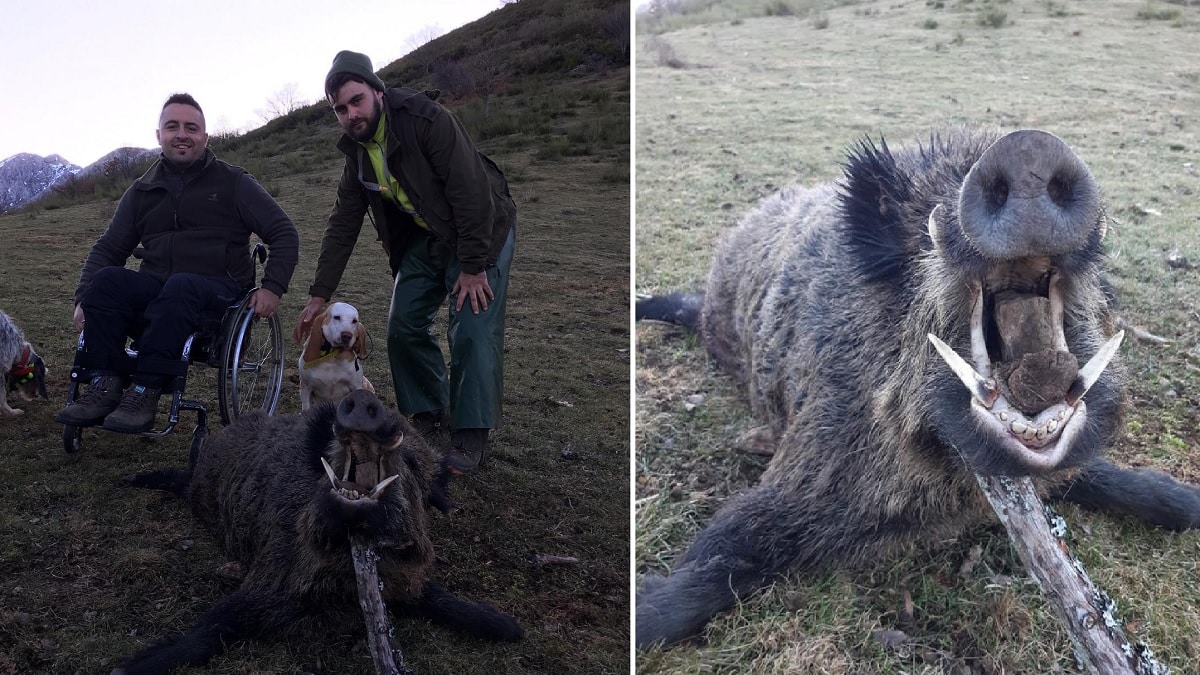 El joven cazador leonés José Manuel Suárez ‘Tachi‘, que en 2015 sufrió un accidente al caerse desde una roca durante una cacería cerca de la localidad de Almuzara que le dejó en una silla de ruedas, ha vuelto a protagonizar un bello capítulo en su trayectoria cinegética al abatir un destacable jabalí hace unos días.