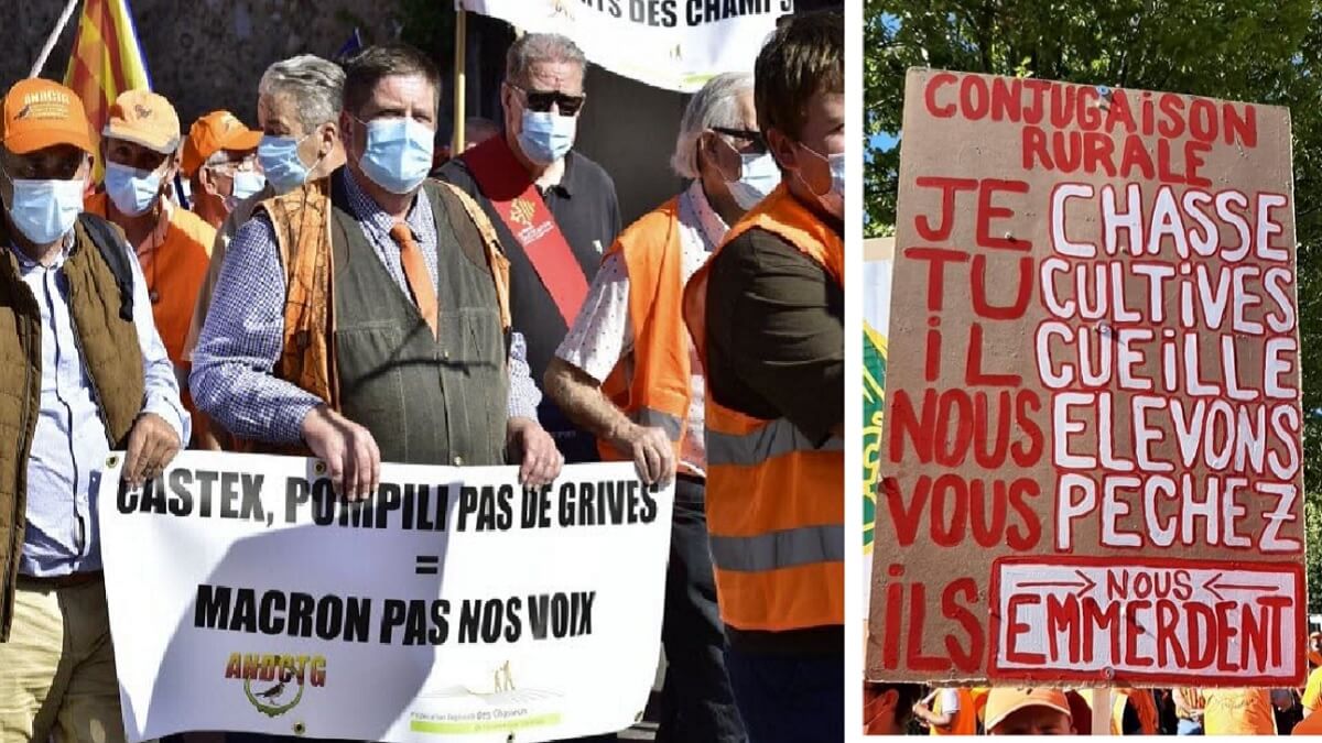 La protesta estuvo convocada por la Asociación para la Defensa de la Caza Tradicional del Zorzal y por el Movimiento Ruralidad, y en ella los manifestantes optaron simbólicamente por reunirse en el Ayuntamiento en el que Jean Castex fue alcalde hasta su adhesión al puesto de Primer Ministro.