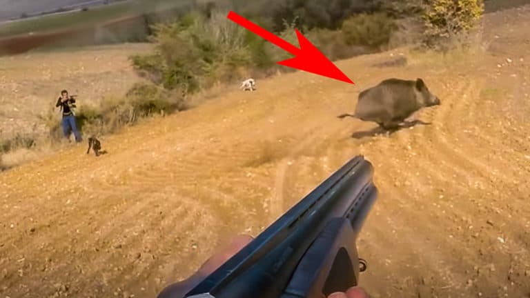 A continuación comienza una frenética carrera por parte de uno de los cazadores hacia un cerro para tratar de avistar al jabalí y ver si finalmente cae. El vídeo termina con el hombre desesperado mirando de un lado a otro sin localizarlo. Aunque se ve en las imágenes cómo lo alcanzan en varias ocasiones y cómo el jabalí pega con el jeta en el suelo, encaja los disparos y continúa huyendo.